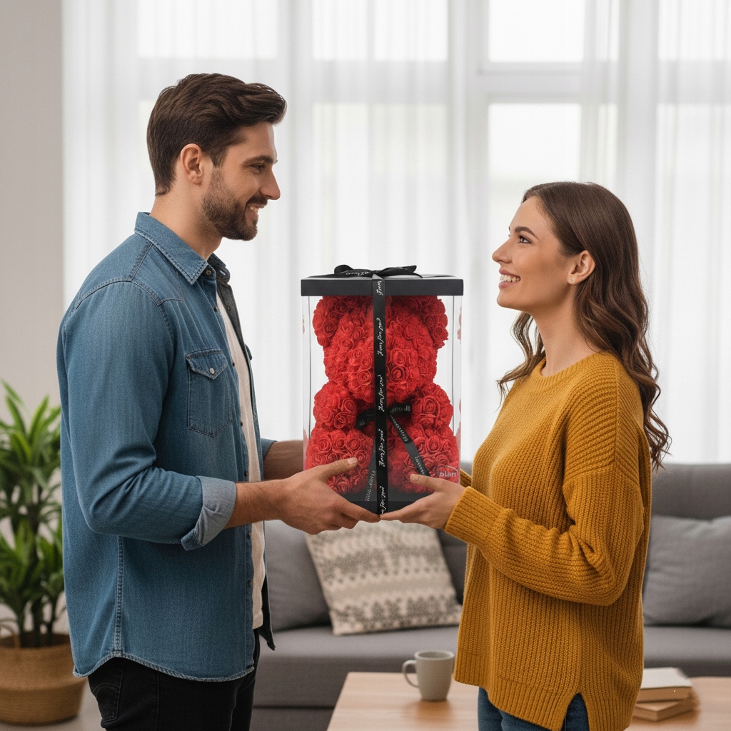 W przeciwieństwie do zwykłych bukietów czy pluszaków, Różany Miś zachowuje swój wygląd przez długi czas.